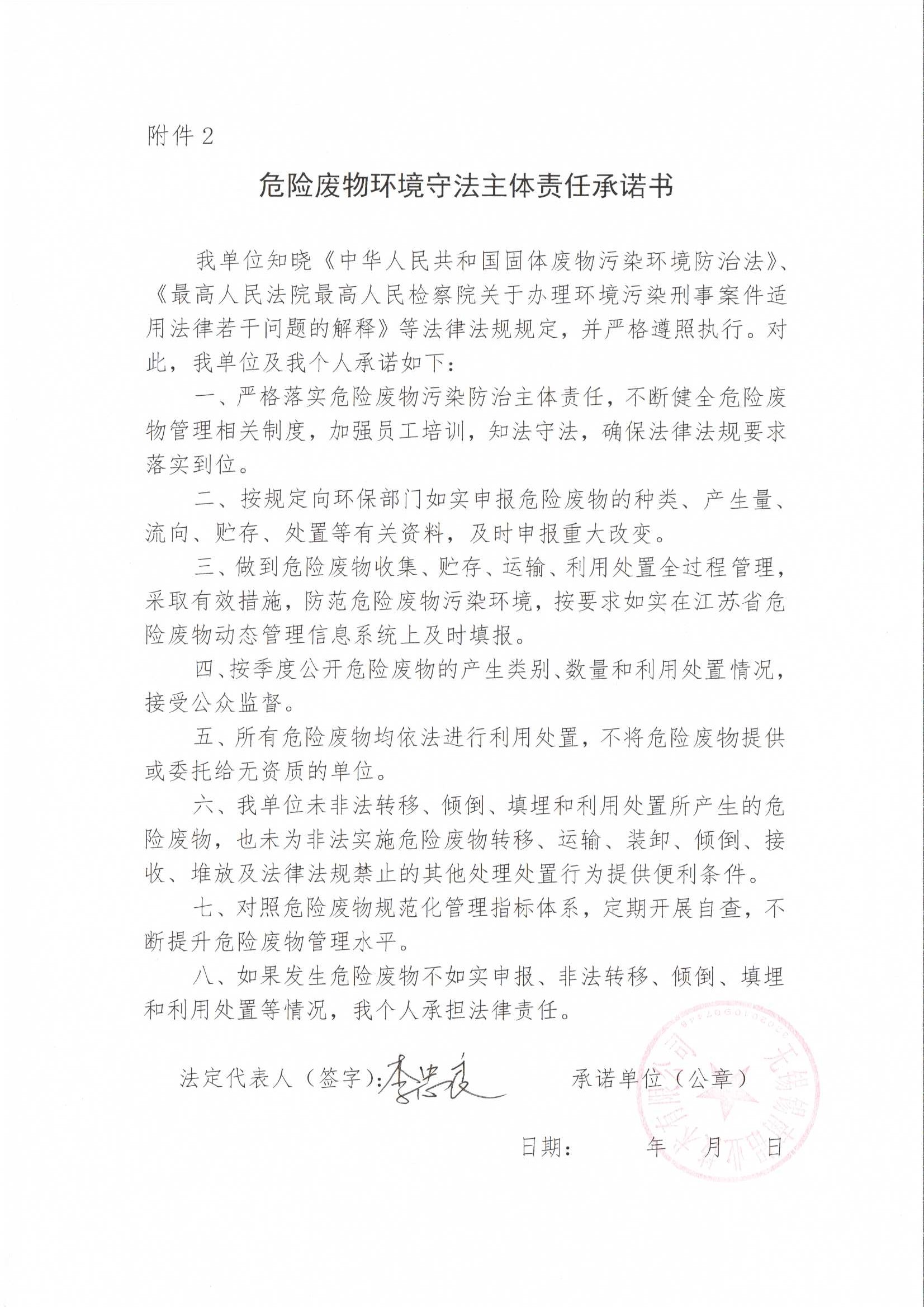 危險廢物環(huán)境守法主體責(zé)任承諾書